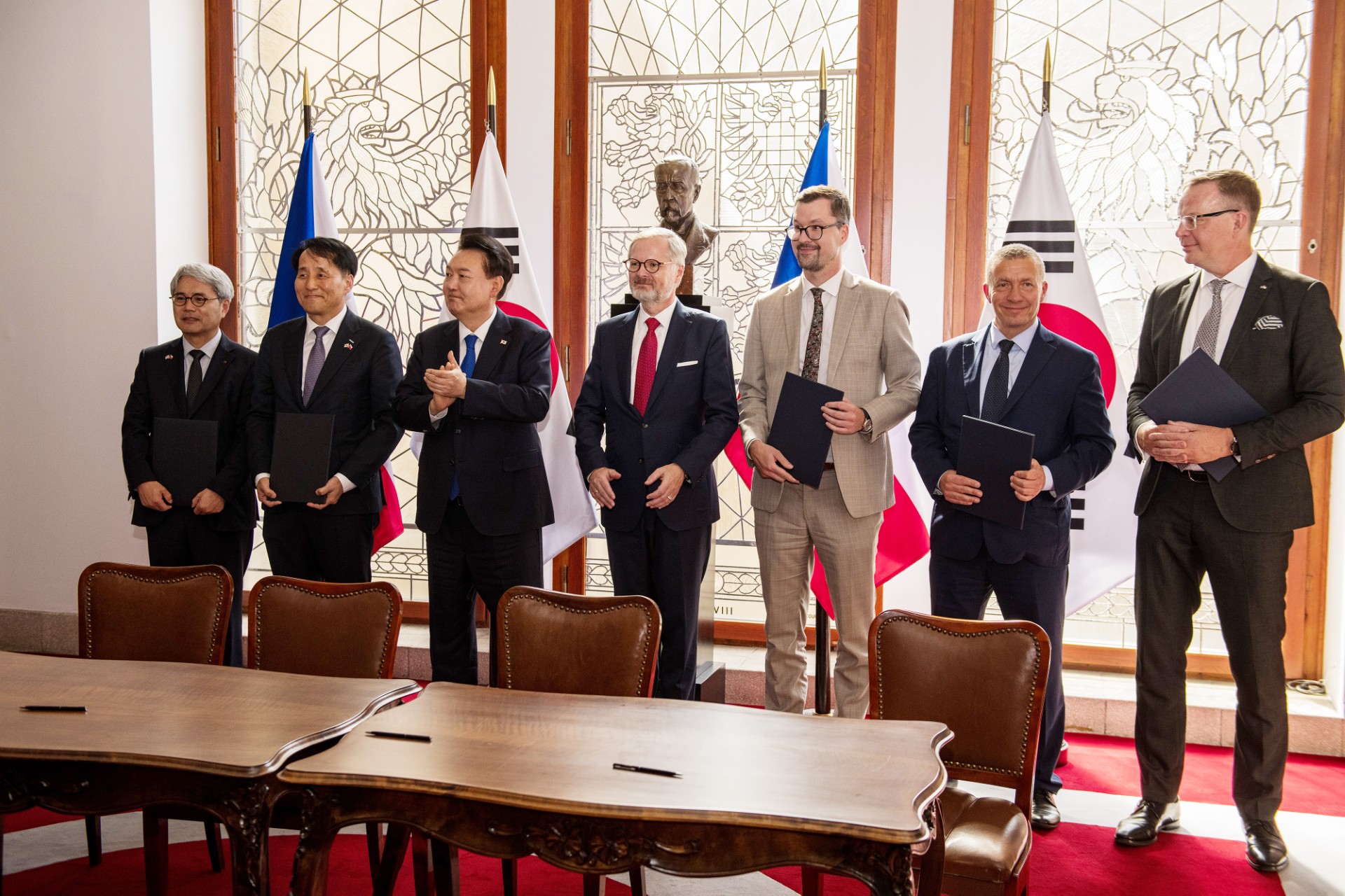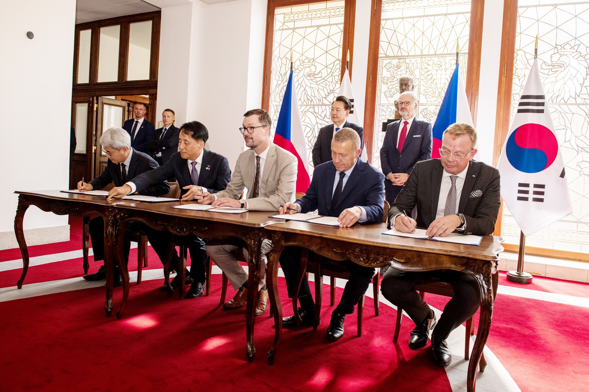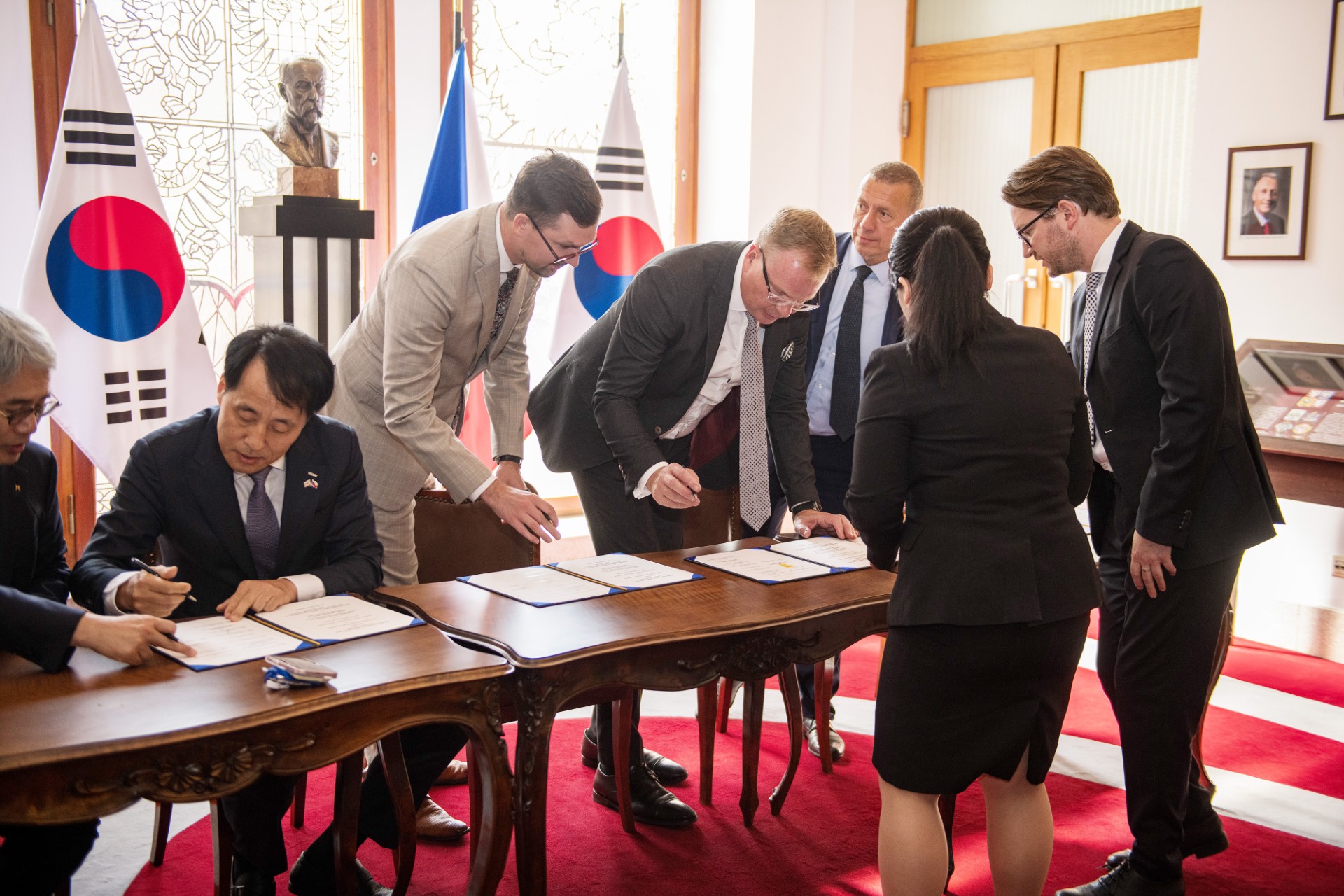 Za účasti českého premiéra Petra Fialy a jihokorejského prezidenta Jun Sok-jola dokument podepsal Michal Nebeský, člen představenstva NRB, Daniel Krumpolc, generální ředitel ČEB a David Havlíček, předseda představenstva EGAP. Za korejskou stranu memorandum podepsal Hee-sung Yoon, generální ředitel The Export-Import Bank of Korea a Youngjin Jang, prezident Korea Trade Insurance Corporation.